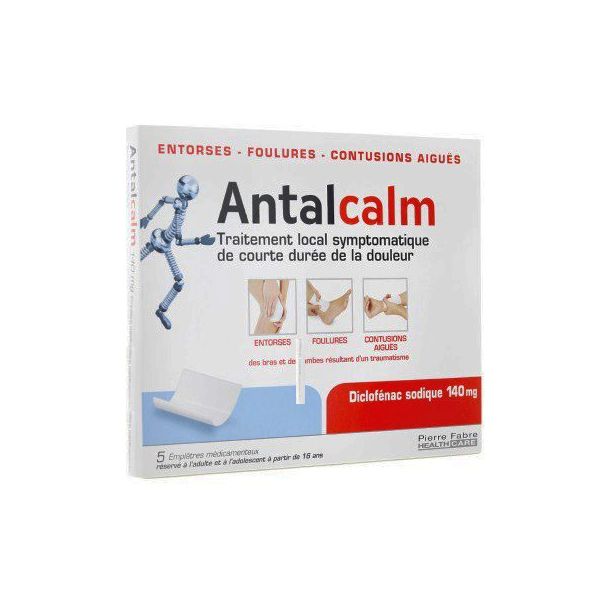 Antalcalm 140 mg 5 emplâtres permet de réduire la douleur en cas d'entorses, de foulures, ou de contusions aiguës des bras et des jambes.