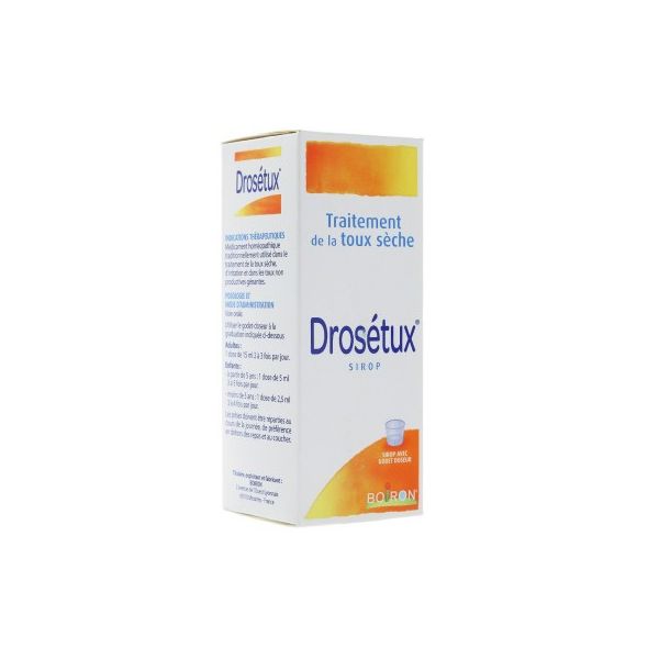 Drosétux sirop est un médicament homéopathique traditionnellement utilisé dans le traitement des toux sèches, d'irritation et dans les toux non productives gênantes.